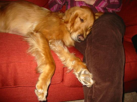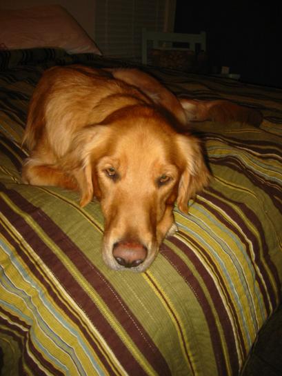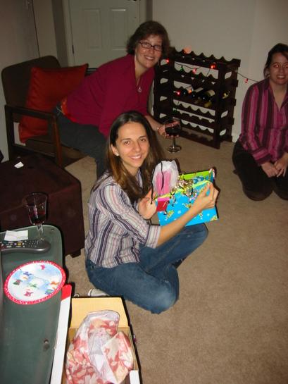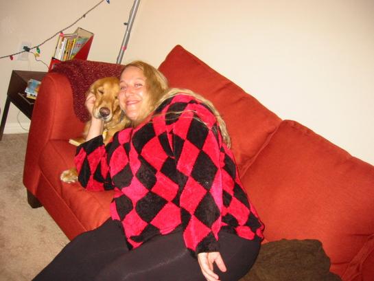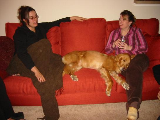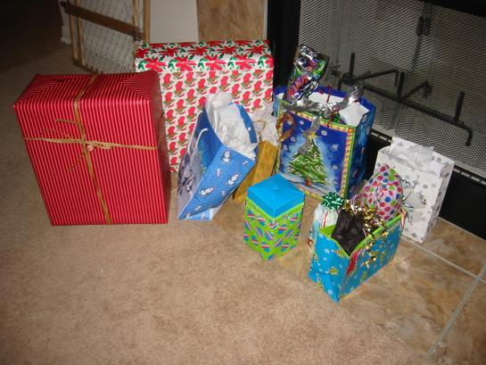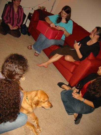 Rockypants gets too excited and has to wait in the bedroom until gifting is over.