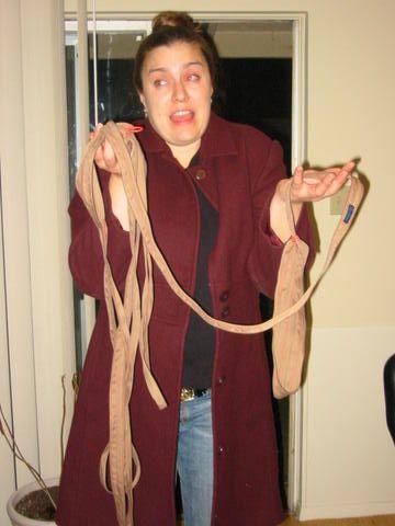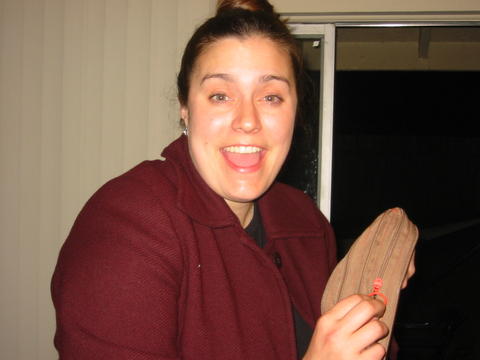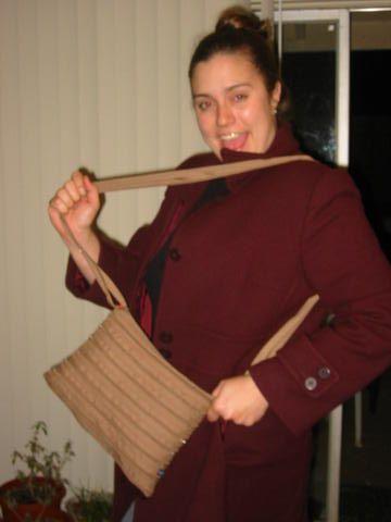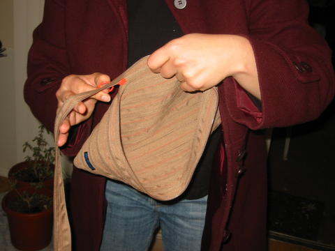 First I opened my presents from Kelly. One item said it was a purse but it just looked like a really, really long zipper. Of course we had to investigate.