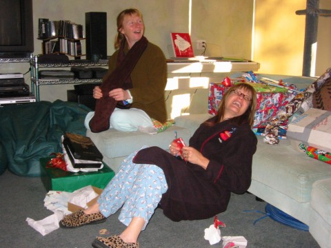 Eileen and Jackie check out someone's present.