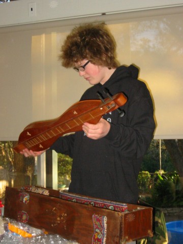 Luke got a dulcimer from Uncle Don.