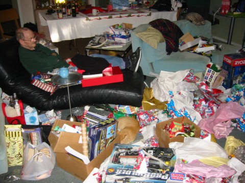 Grandpa surveys the mess.